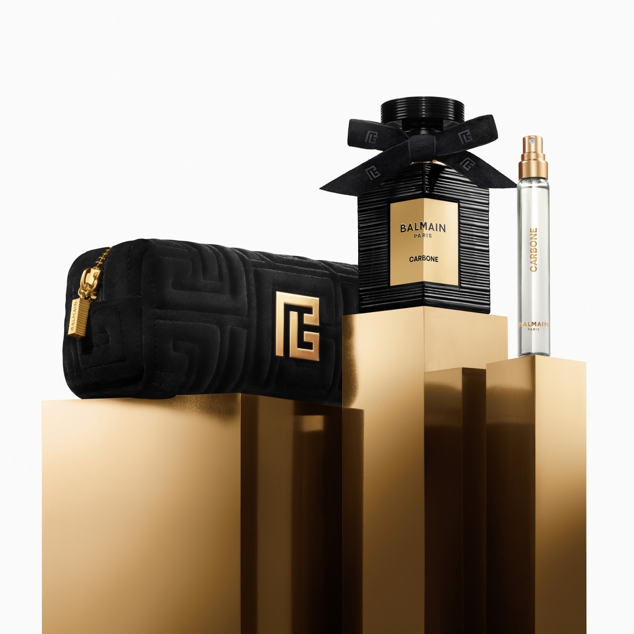 A bold identity statement in two sizes: Carbone, complete with a signature Balmain pouch.